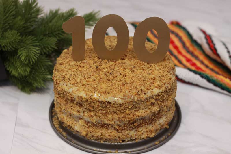 Ореховата торта е готова за сервиране.